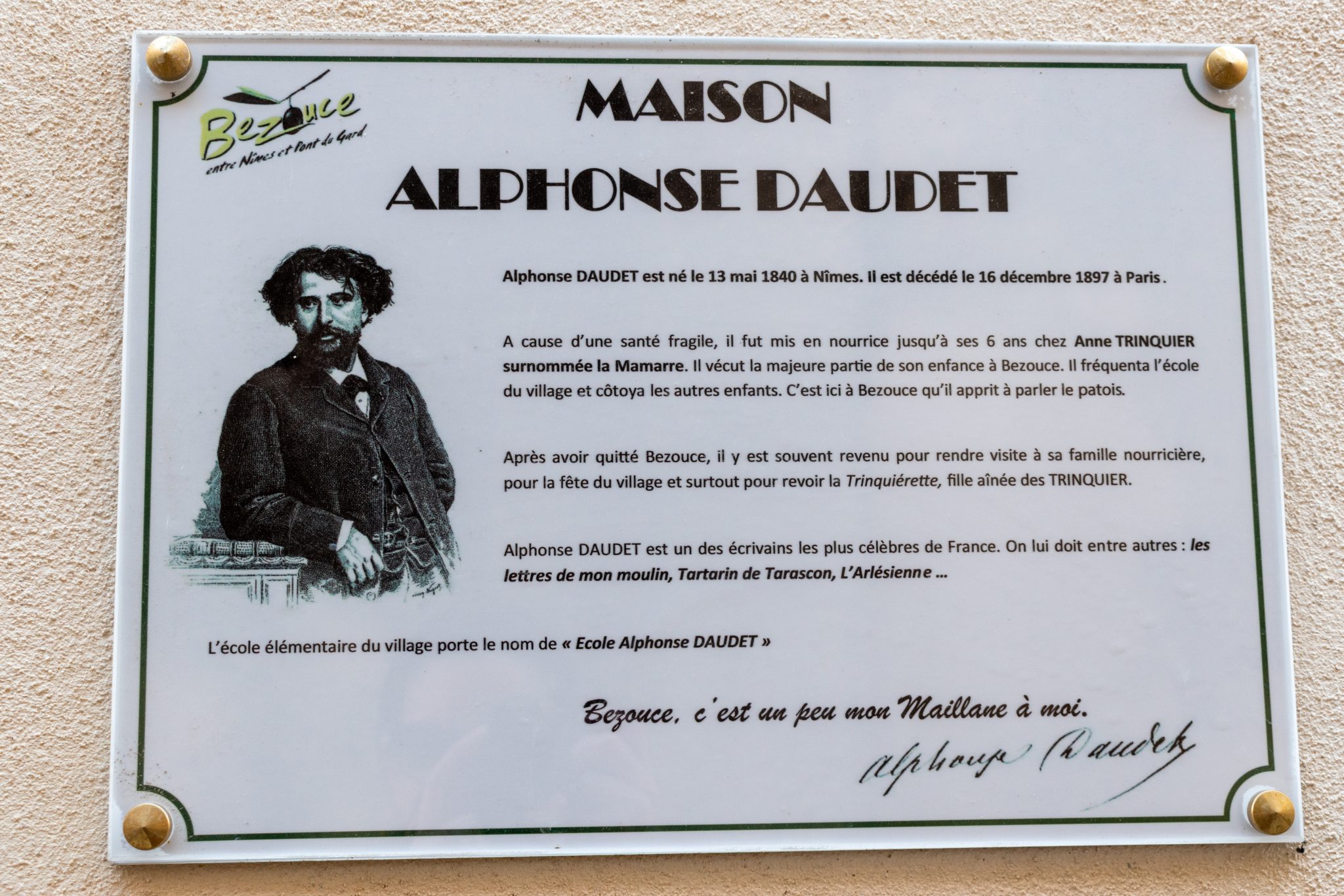 Alphonse Daudet y fut mis en nourrice jusqu’à ses 6 ans, y apprenant le patois.