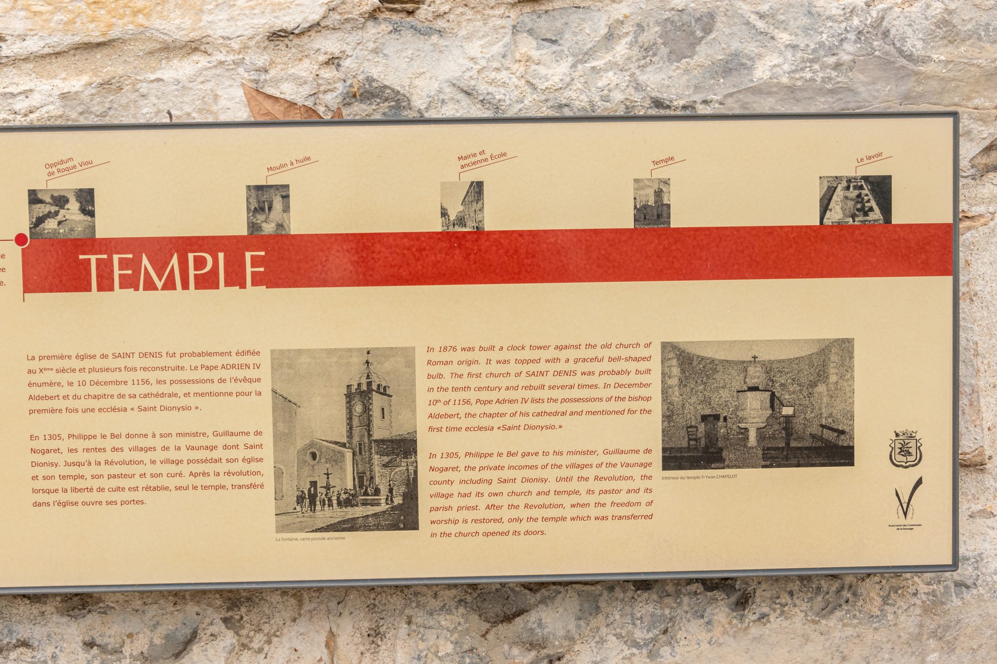 Construite au Xe siècle, elle fut plusieurs fois reconstruite. La Réforme du XVIe siècle apporta des conflits religieux entre Catholiques et Protestants. Après la Révolution, seul le temple protestant resta en usage, indiquant la prédominance protestante dans le village.